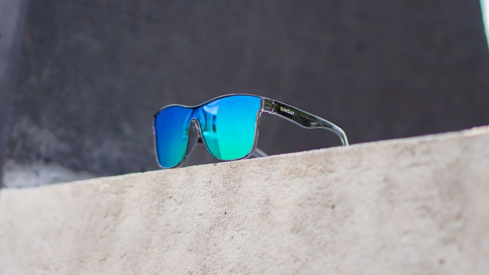 Stel je de bruisende energie van neonlichten voor die je zonovergoten avonturen elektrificeren en elk moment veranderen in een spannende urban escape. Geef je zonnige dagen een levendige transformatie met de Neon Reflections Flare. Het glanzende, transparante donkergrijze montuur vormt de perfecte match met de betoverende 'rainbow' lenzen, die spelen met tinten groen, blauw en geel.